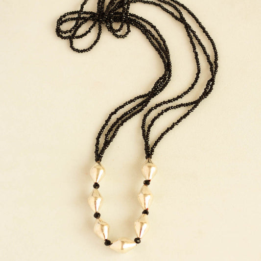 Pure Silver Dholki Beads Single Line Necklace