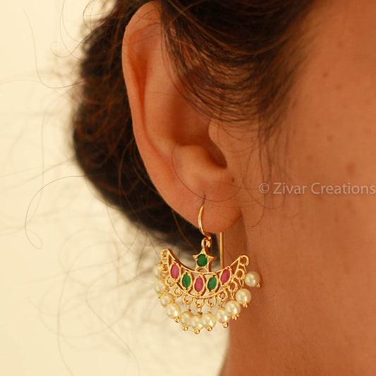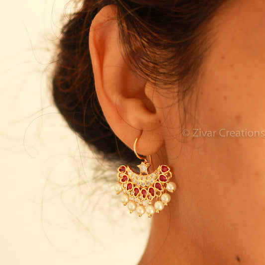 Red And Green Beads Silver Hanging Earring (Jhumka)