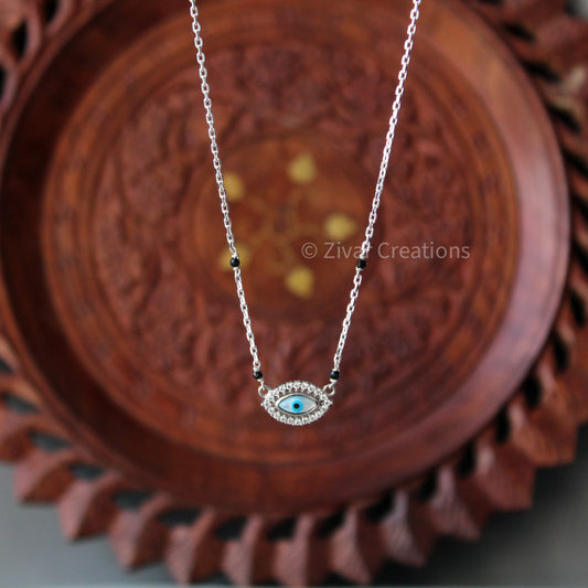Evil Eye Solid 925 Sterling Silver Necklace Mangalsutra