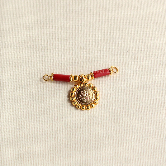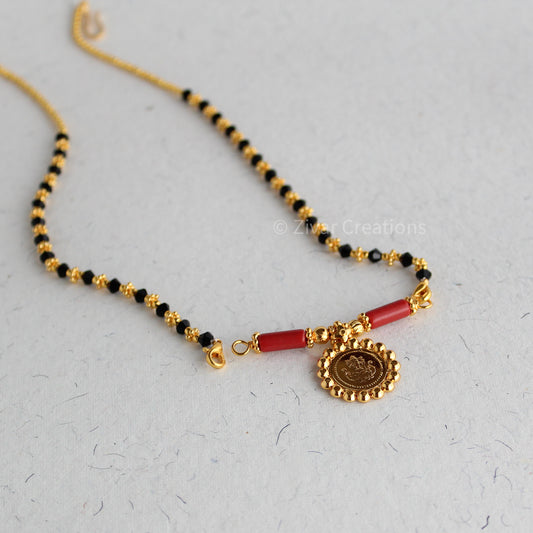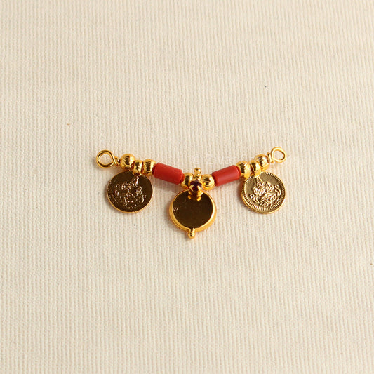 Gold Tone Coral Beads Lakshmi Coin Mangalsutra Pendant