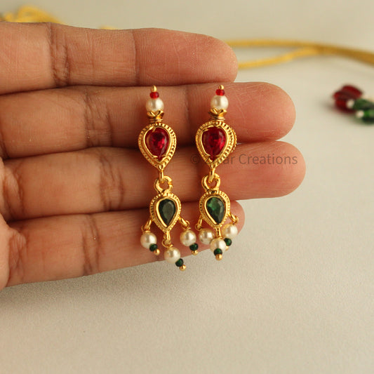 Red And Green Stone Gold Beads Thushi Tanamani Necklace