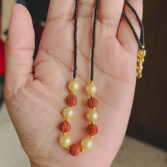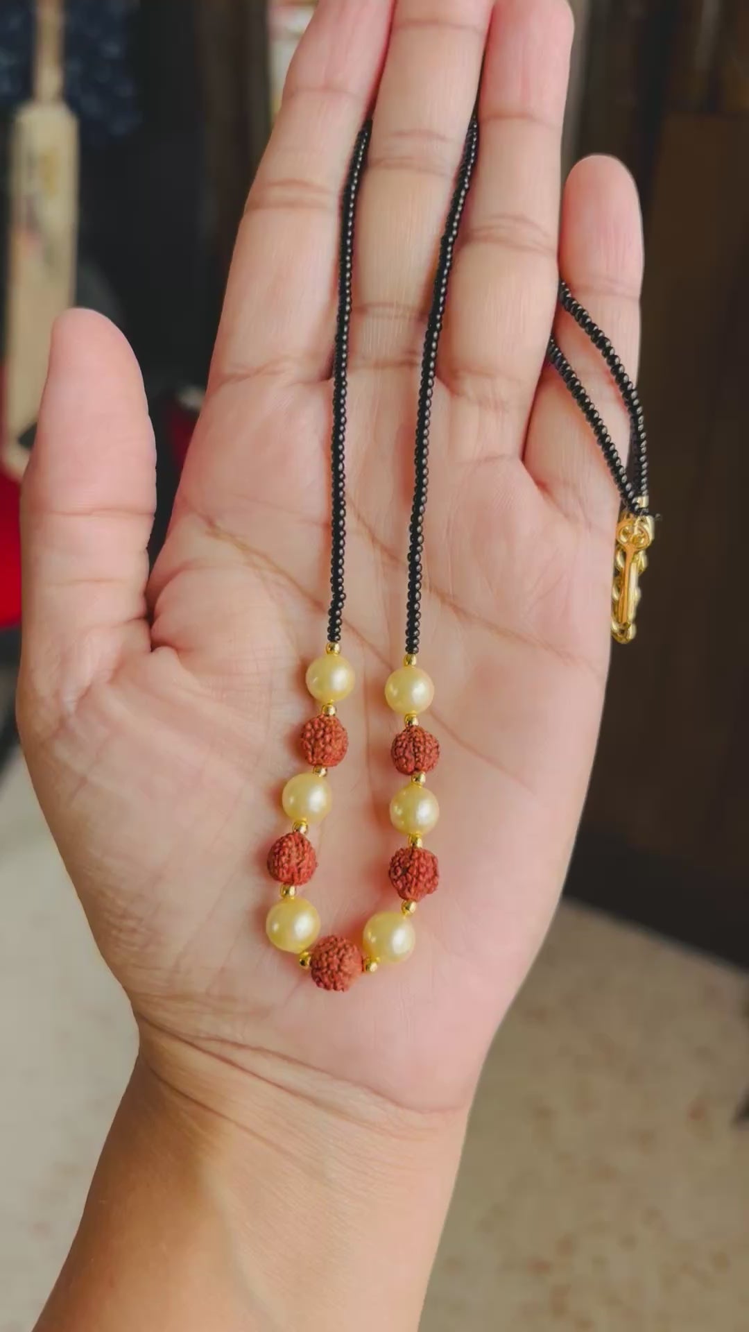 Very unique design , combination of rudraksh and Yellow pearl. Small black beads single line attached.